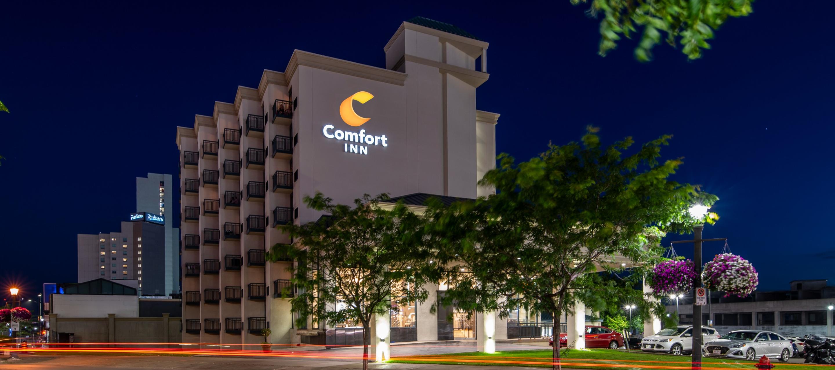 The Comfort Inn Fallsview is a great hotel, situated in the heart of the hip Fallsview District, located directly across the street from the Fallsview Casino Resort, the Niagara Parks Incline Railway, and is so close to the thundering glory of the mighty Niagara Falls, you can actually feel the mist. Many of Niagara's other top attractions including the Skylon Tower, Niagara City Cruises, Niagara Falls Adventure Theatre and Journey behind the Falls, are just around the corner from this three diamond gem.